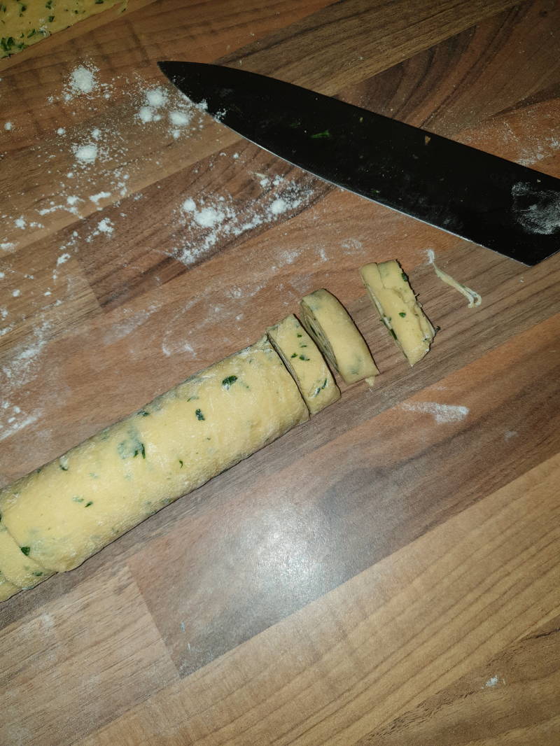 Van de slierten snijd je vervolgens vierkante stukjes af en dan heb je gnocchi.