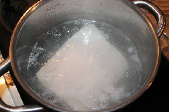 Kook de buikspek 30 minuten in een pan met ruim water.
