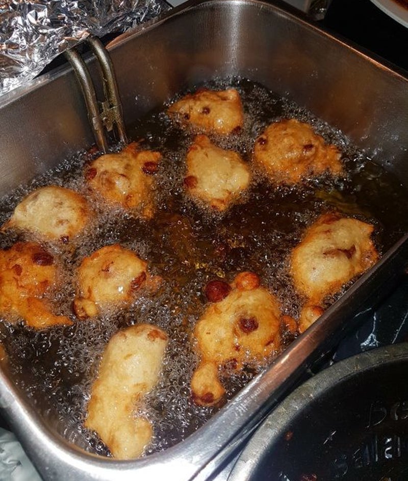Daarna kun je de oliebollen gaan bakken in zonnebloemolie.