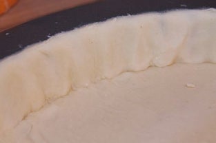 Druk het deeg goed in de vorm en snijd de overtollige randjes weg.