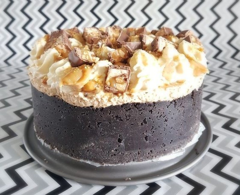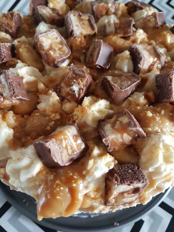 Gebruik i.p.v. snickers ook eens Reese's peanutbutter cups voor de topping.